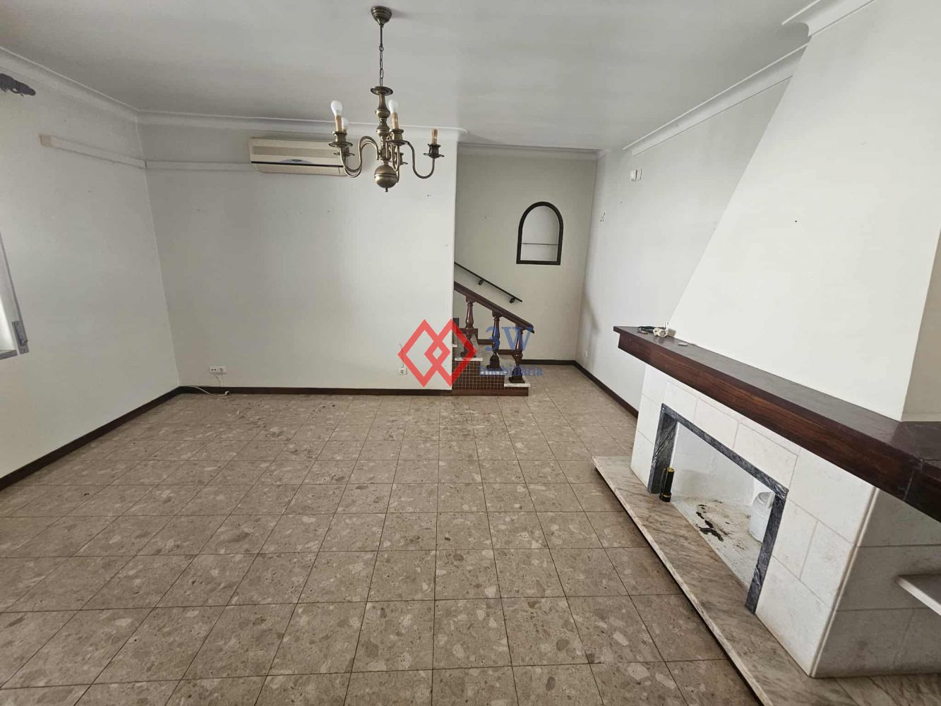 Uma sala com lareira